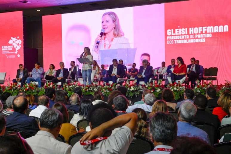 Gleisi Hoffmann, presidente da sigla, disse que o PT nasceu 'na luta contra a ditadura, em defesa do direito de greve' e atribuiu à gestão de Jair Bolsonaro 'um período de caos e destruição'