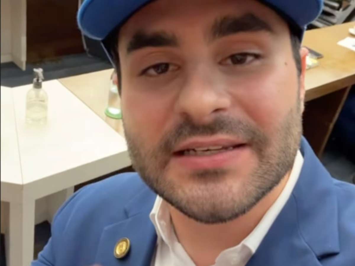 Logo depois, o vereador Pablo Almeida (PL) se dirigiu ao microfone com um boné que levava a mensagem "Sem café, sem picanha e sem cerveja".