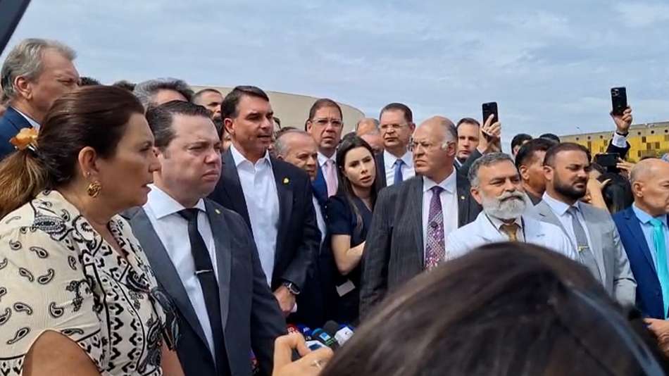 O senador deu uma entrevista coletiva acompanhado de apoiadores na manhã desta terça-feira, 5. Flávio continuou defendendo que o ministro do STF Alexandre de Moraes não teria competência para julgar o processo que envolve o seu pai, Jair Bolsonaro (PL). O pretenso pacote solicita, além da saída do magistrado, o fim do foro privilegiado e a anistia pelos envolvidos no 8 de janeiro. A prisão domiciliar do político foi decretada na última segunda-feira, 4, após o ex-presidente descumprir medidas cautelares, como a transmissão por redes sociais dos filhos. Deborah Sena/Redação Terra