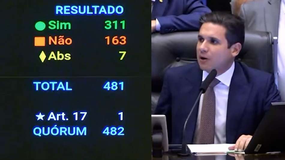 O requerimento de urgência foi pautado na noite desta quarta-feira, 17, pelo presidente da Câmara dos Deputados, Hugo Motta. A proposta recebeu 311 votos favoráveis e 163 contrários. O projeto de lei prevê anistia aos condenados pelos atos golpistas de 8 de janeiro de 2023. Reprodução/Câmara dos Deputados/Youtube