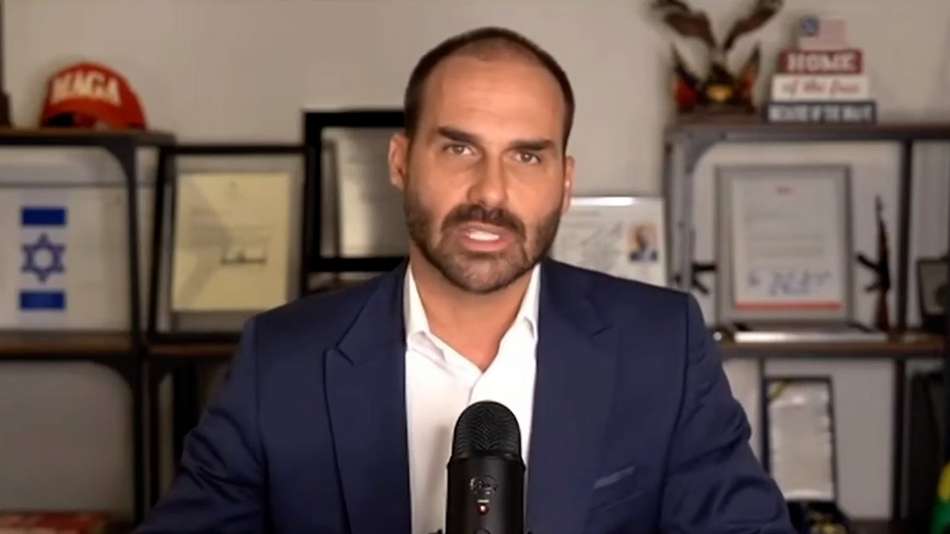 O deputado participou nesta quarta-feira, 27, de audiência da Subcomissão Especial dos Direitos dos presos de 8 de janeiro. O parlamentar não registra presença física na Câmara desde março; ele esteve licenciado por 120 dias e desde julho contabiliza faltas injustificadas. "Foi dessa maneira que eu e Paulo Figueiredo fomos ao congresso americano, a Casa Branca, e levar informações que culminaram na sanção Magnitsky a Alexandre de Moraes, que ainda vai piorar, eu tenho certeza disso", afirmou Eduardo após atacar o ministro do Supremo Tribunal Federal. Em solo americano, Eduardo defendeu anistia as pessoas que participaram dos ataques à sede dos Três Poderes. Reprodução/TV Câmara/Youtube