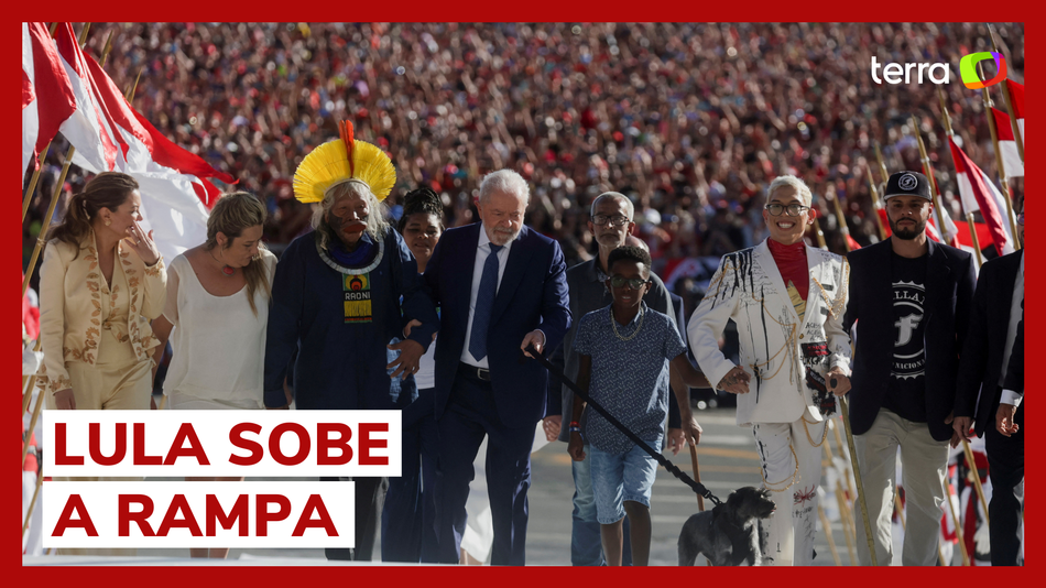 Acompanhado de cidadãos que 'simbolizam a riqueza da diversidade do povo brasileiro', Lula sobe a rampa do Palácio do Planalto pela terceira vez para assumir a presidência da República.
