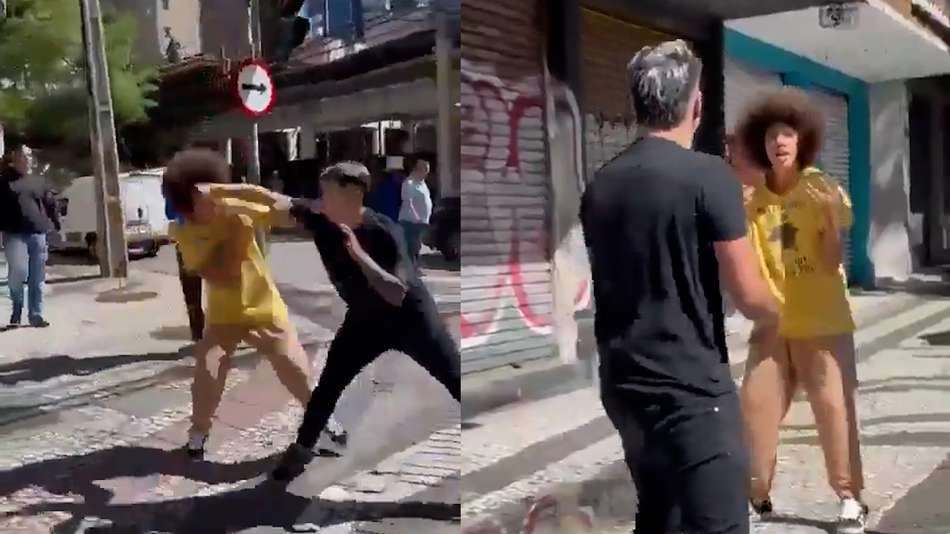 A cena foi registrada na manhã desta quarta-feira, 19, na avenida Vicente Machado no centro de Curitiba. No vídeo, é possível ver Renato Freitas e um homem de camisa preta trocando chutes e socos. Em determinado momento, o rosto do deputado começa a sangrar; não há informações sobre o motivo da briga. Segundo a emissora RPC, afiliada da TV Globo no Paraná, o parlamentar quebrou precisou ser encaminhado a um hospital após ter o nariz quebrado. Reprodução/@lazarorosa25/X Reprodução/@Saray_sandrac/X