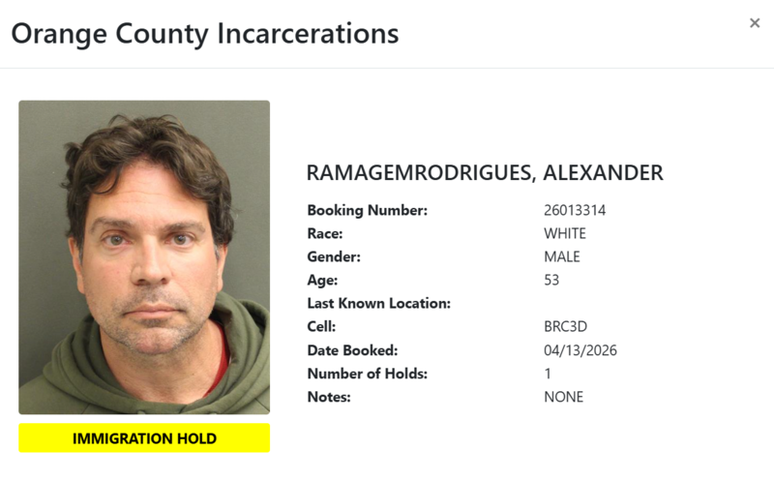 Alexandre Ramagem foi detido pelo ICE na segunda-feira (13/4), em Orlando, na Flórida, onde vive desde o final do ano passado com sua mulher e as duas filhas.