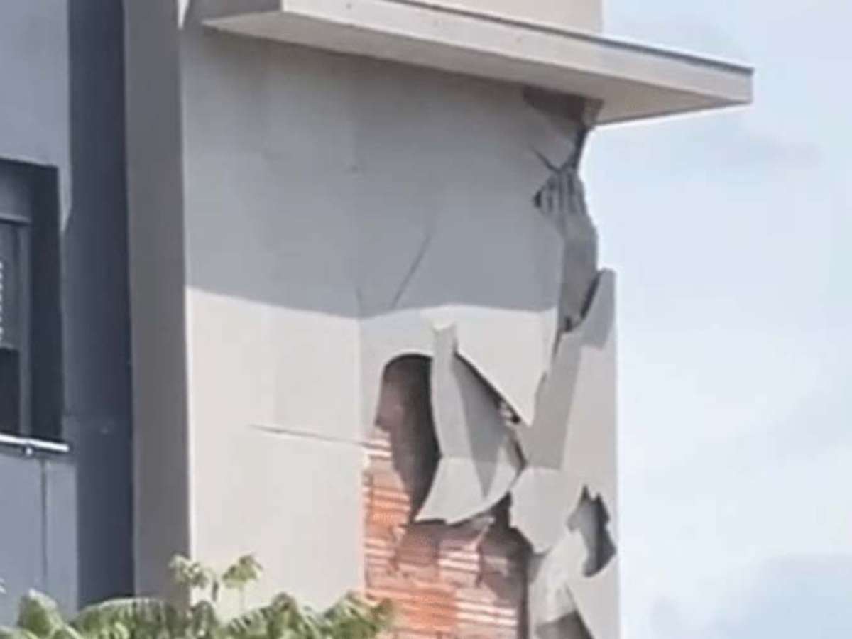 O prédio foi completamente esvaziado. O solicitante contou aos bombeiros que, após um estrondo, o prédio tremeu e parte da estrutura caiu.