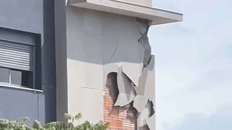 Edifício está com pilar comprometido. A estrutura está com a ferragem exposta e sinais de rompimento de algumas barras, segundo o Corpo de Bombeiros. Além disso, lateral do prédio apresenta sinais de flambagem, ou seja, está se curvando.