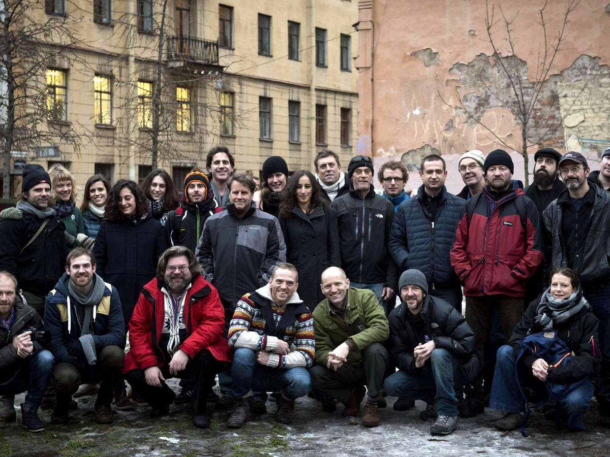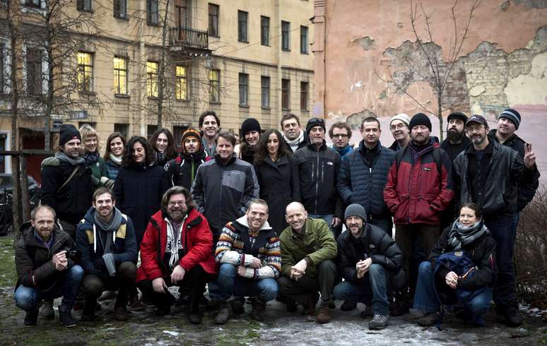 O grupo conhecido como os 30 do Ártico em São Petersburgo