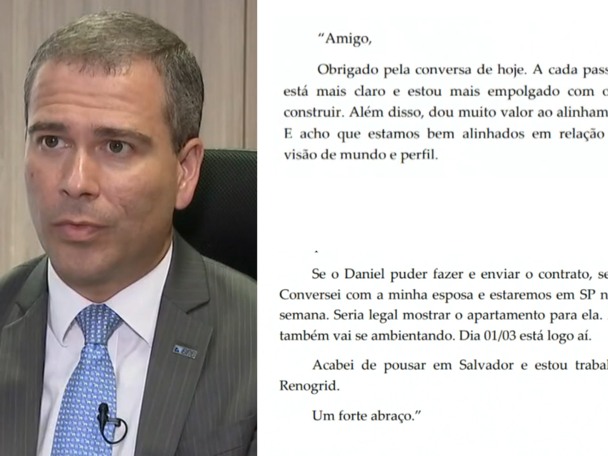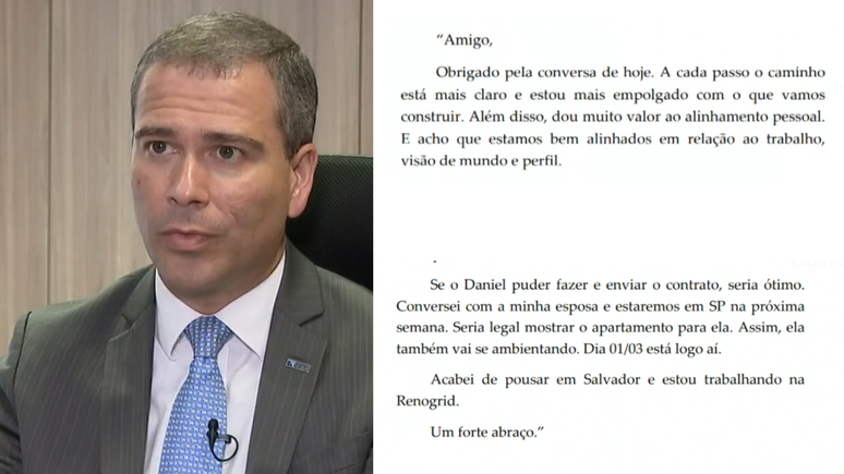 "Se o Daniel (Monteiro) puder fazer e enviar o contrato, seria ótimo. Conversei com minha esposa e estaremos em SP na próxima semana. Seria legal mostrar o apartamento para ela. Assim, ela também vai se ambientando. Dia 01/03 está logo aí", continua o ex-presidente do BRB.