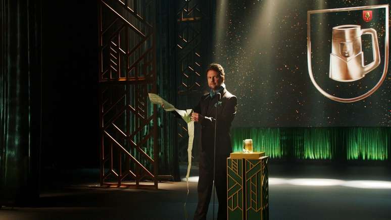 O ator interpreta, no filme publicitário, um apresentador de premiação de cinema para anunciar a chegada das canecas celebrativas da marca "Spaten: Caneca vira objeto de desejo nas redes sociais e Selton Mello anuncia promoção"