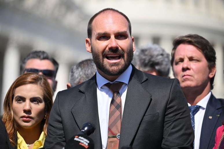 Na ocasião, Eduardo alegou perseguição judicial e disse que temia ser preso. Ele afirmou que ficaria nos EUA para se dedicar em tempo integral a convencer o governo de Donald Trump a atuar pela anistia dos envolvidos nos ataques de 8 de janeiro no Brasil e buscar sanções ao ministro do STF, Alexandre de Moraes.