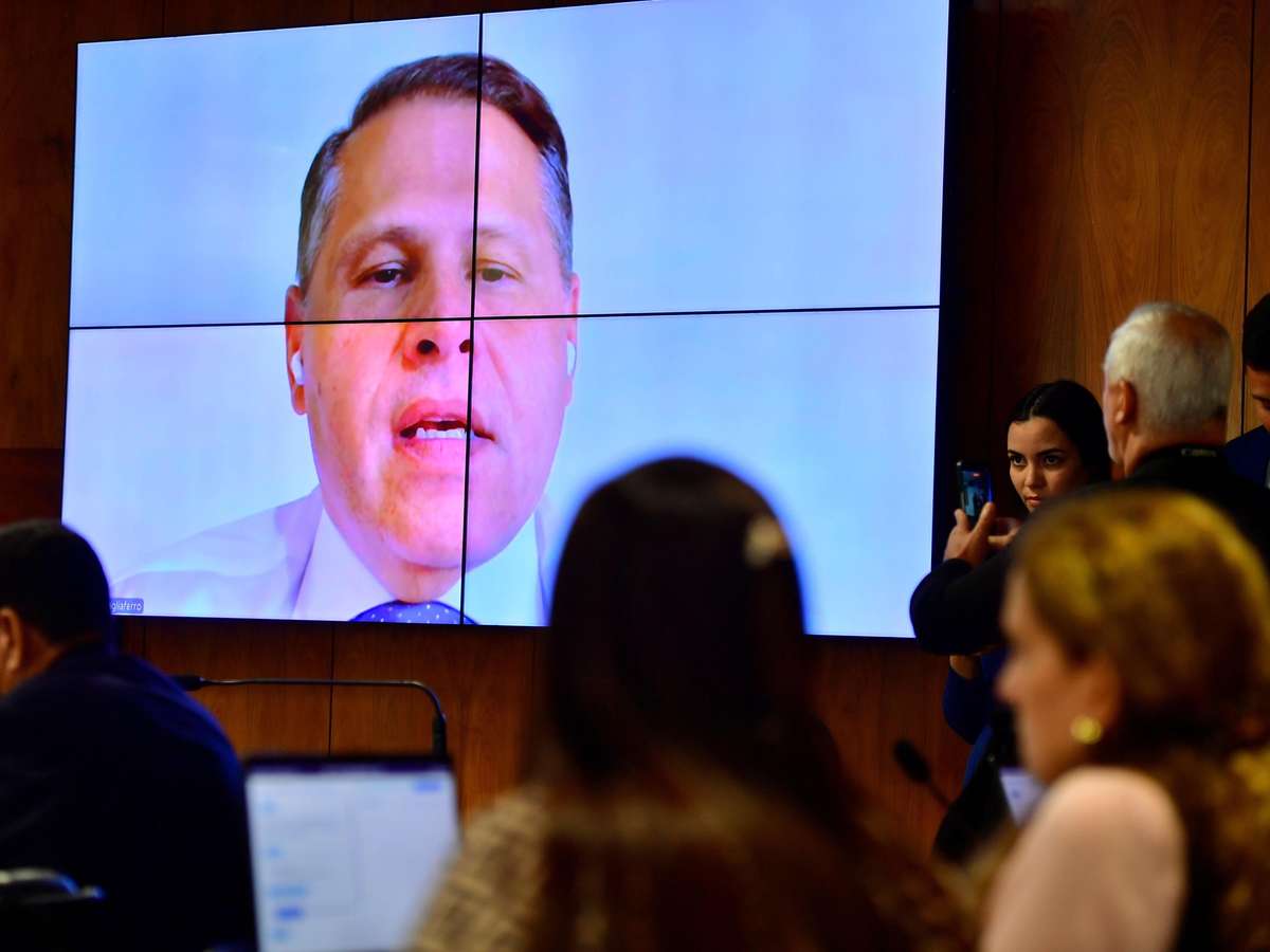 Ele participou da sessão por videoconferência após uma convocação do senador Flávio Bolsonaro, presidente da comissão e filho do ex-presidente Jair Bolsonaro.
