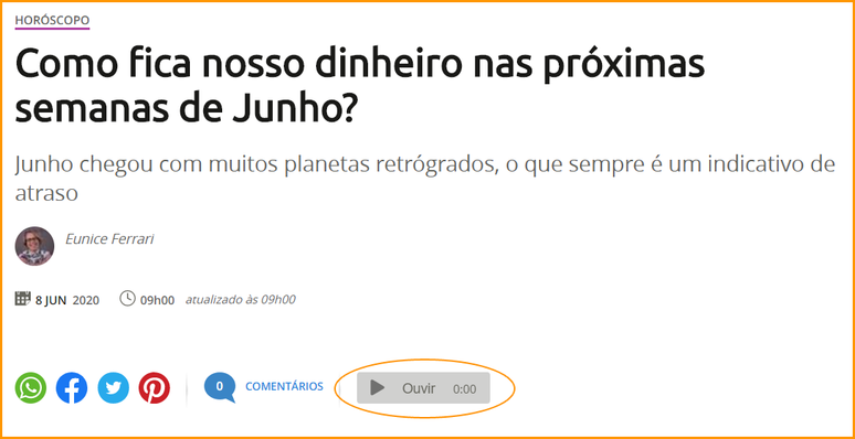 A nova funcionalidade possibilita aos usuários escutar as reportagens publicadas no portal; o botão de play fica no início das páginas