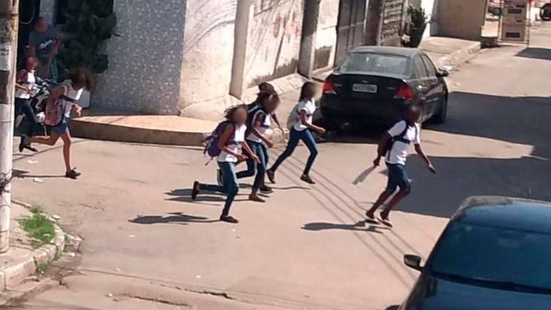 "Foi um horror. Porque além de ter caveirões na rua, tinha helicóptero atirando de cima. Era muita gente correndo lá fora. Não havia para onde ir, tivemos que ficar no corredor esperando o tempo passar, ouvindo o helicóptero ir e voltar, as crianças desesperadas", diz ela, que mora perto da escola. "É muito complicado o que a gente passa aqui. O aprendizado é muito lento por causa dessas questões. Quando não é falta de luz, falta de água, é tiroteio", desabafa.