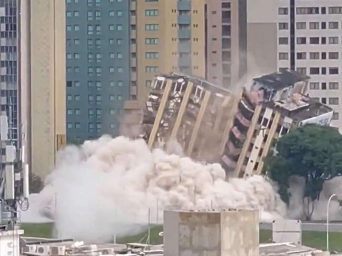 Foram utilizados cerca de 165 kg de explosivos para derrubar o prédio, um dos hotéis icônicos de Brasília.