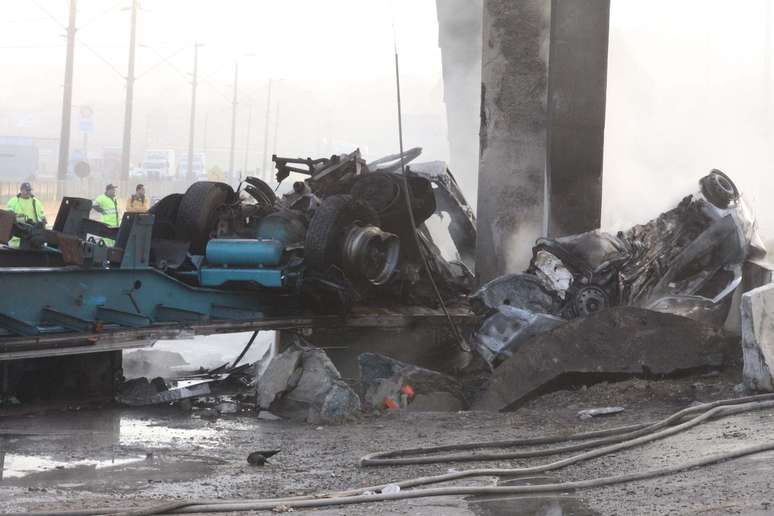 PUBLICIDADE Capa Notícias Brasil Trânsito Trânsito Acidente entre caminhão e carros deixa um morto em rodovia de SP Compartilhar O caminhão tombou e pegou fogo, provocando outros acidentes Foto: Roberto Vazquez / Futura Press O grave acidente aconteceu no final da madrugada, na pista sentido São Paulo da rodovia Foto: Roberto Vazquez / Futura Press O caminhão tombou e pegou fogo, provocando outros acidentes Foto: Roberto Vazquez / Futura Press Os dois sentidos da rodovia foram bloqueados após o acidente Foto: Roberto Vazquez / Futura Press Dois automóveis bateram no caminhão em chamas e um dos ocupantes dos veículos morreu Foto: Roberto Vazquez / Futura Press O caminhão ficou completamente destruído Foto: Roberto Vazquez / Futura Press Compartilhar Publicidade Compartilhar TAGS Trânsito Notícias Publicidade