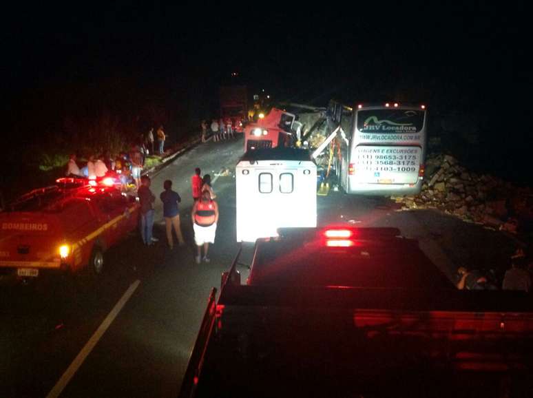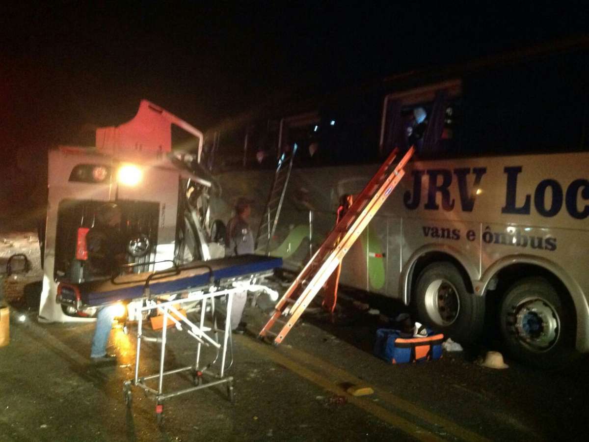 O motorista de uma carreta que transportava biscoitos e mais cinco pessoas que estavam dentro de um ônibus morreram depois que os dois veículos bateram na rodovia federal BR-040. Os ocupantes do ônibus saíram de Belo Horizonte e voltavam de uma excursão em Copacabana durante o fim de semana.