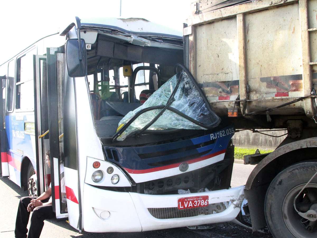 Um acidente entre um caminhão e um ônibus deixou 15 pessoas feridas na manhã desta quinta-feira na rodovia Rio-Magé. A colisão aconteceu na altura do bairro parque Paulista, em Imbariê, distrito de Duque de Caxias.