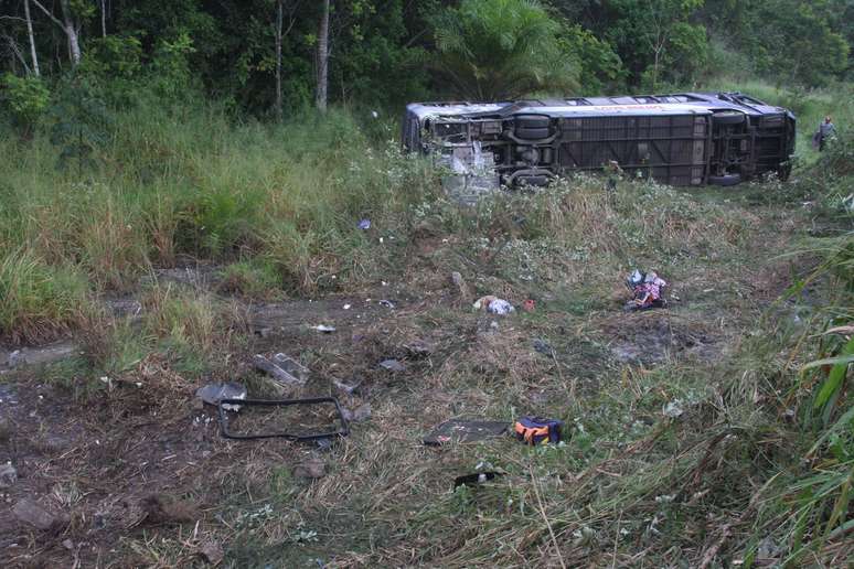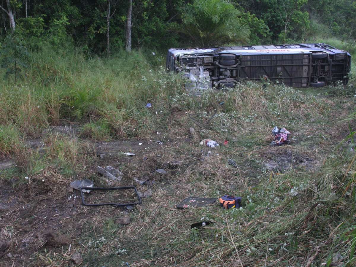 PUBLICIDADE Capa Notícias Brasil Trânsito Trânsito Acidente grave com ônibus deixa 11 mortos no sul da Bahia Compartilhar Acidente grave deixou 11 mortos e 18 feridos após ônibus capotar na manhã desta quarta-feira, na BR-101, na Bahia Foto: Uinderlei Guimarães/BA Press / Futura Press Acidente grave deixou 11 mortos e 18 feridos após ônibus capotar na manhã desta quarta-feira, na BR-101, na Bahia Foto: Uinderlei Guimarães/BA Press / Futura Press Segundo o Corpo de Bombeiros, nove pessoas morreram no local e uma no Hospital Regional de Teixeira de Freitas Foto: Uinderlei Guimarães/BA Press / Futura Press Segundo a Polícia Rodoviária Federal, o coletivo saiu da pista na chamada Curva da Tarifa, no km 896 da BR-101 Foto: Uinderlei Guimarães/BA Press / Futura Press Compartilhar Publicidade Compartilhar TAGS Trânsito Notícias Publicidade