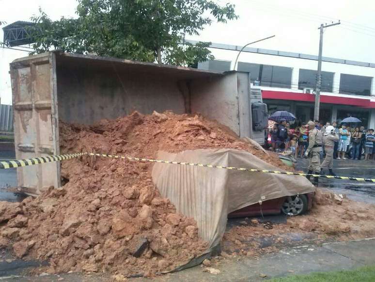 Uma pessoa morreu e outras duas ficaram gravemente feridas após um caminhão-caçamba tombar e a carga, de aproximadamente 10 toneladas de barro, soterrar dois carros em Manaus (AM). O acidente ocorreu no final da tarde desta quinta-feira na principal avenida que liga a região centro-oeste à sul da capital. Por causa do acidente, o trânsito ficou caótico em boa parte da cidade.