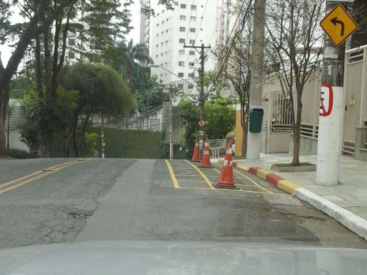 As principais queixas recaem sobre o conjunto de prédios localizado na altura do número 156 da rua. Apesar da sinalização, que proíbe o estacionamento naquele trecho, cones e pintura no solo demarcam vagas na via.