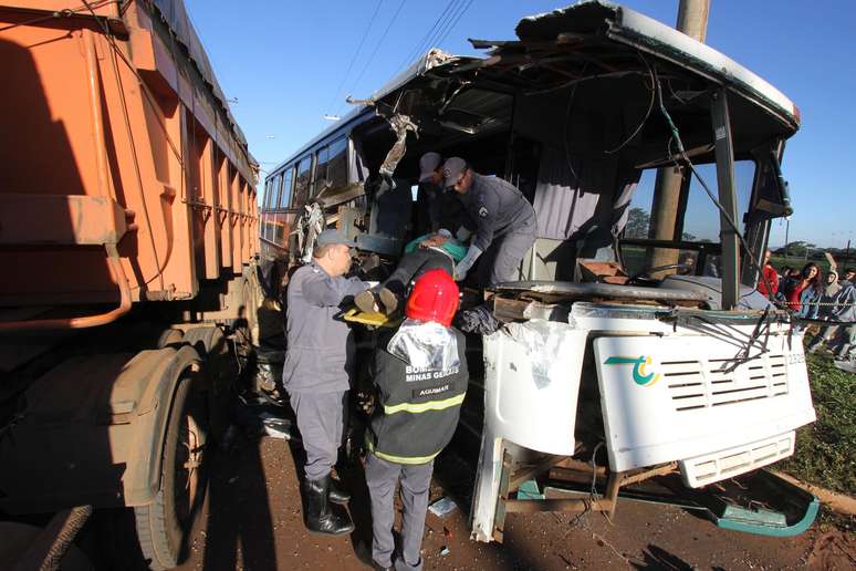 PUBLICIDADE Capa Notícias Brasil Trânsito Trânsito MG: acidente entre caminhão e ônibus deixa oito feridos em Uberaba Compartilhar Acidente entre ônibus e caminhão mobilizou o Corpo de Bombeiros na manhã desta quarta-feira em Uberaba (MG) Foto: L. Adolfo / Futura Press Acidente entre ônibus e caminhão mobilizou o Corpo de Bombeiros na manhã desta quarta-feira em Uberaba (MG) Foto: L. Adolfo / Futura Press Pelo menos oito pessoas ficaram feridas na colisão - uma em estado grave Foto: Corpo de Bombeiros / Divulgação Acidente ocorreu na região do Distrito Industrial II Foto: Corpo de Bombeiros / Divulgação Compartilhar Publicidade Compartilhar TAGS Trânsito Notícias Publicidade