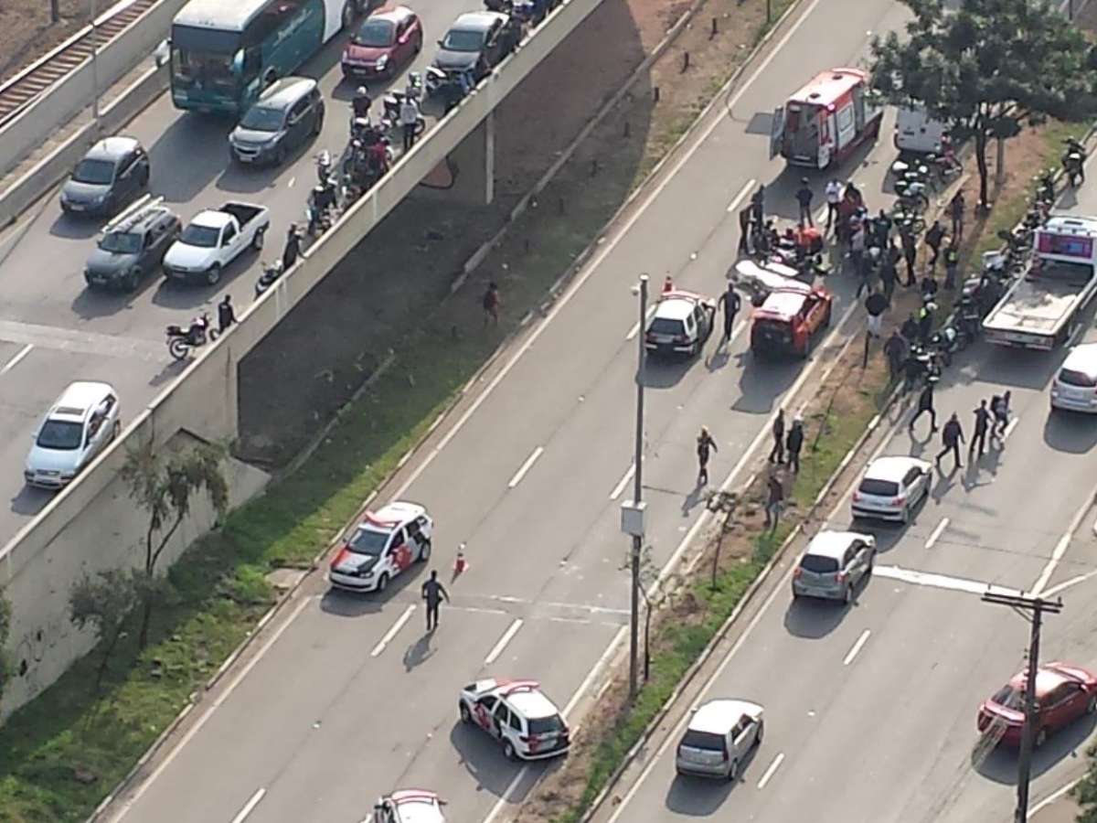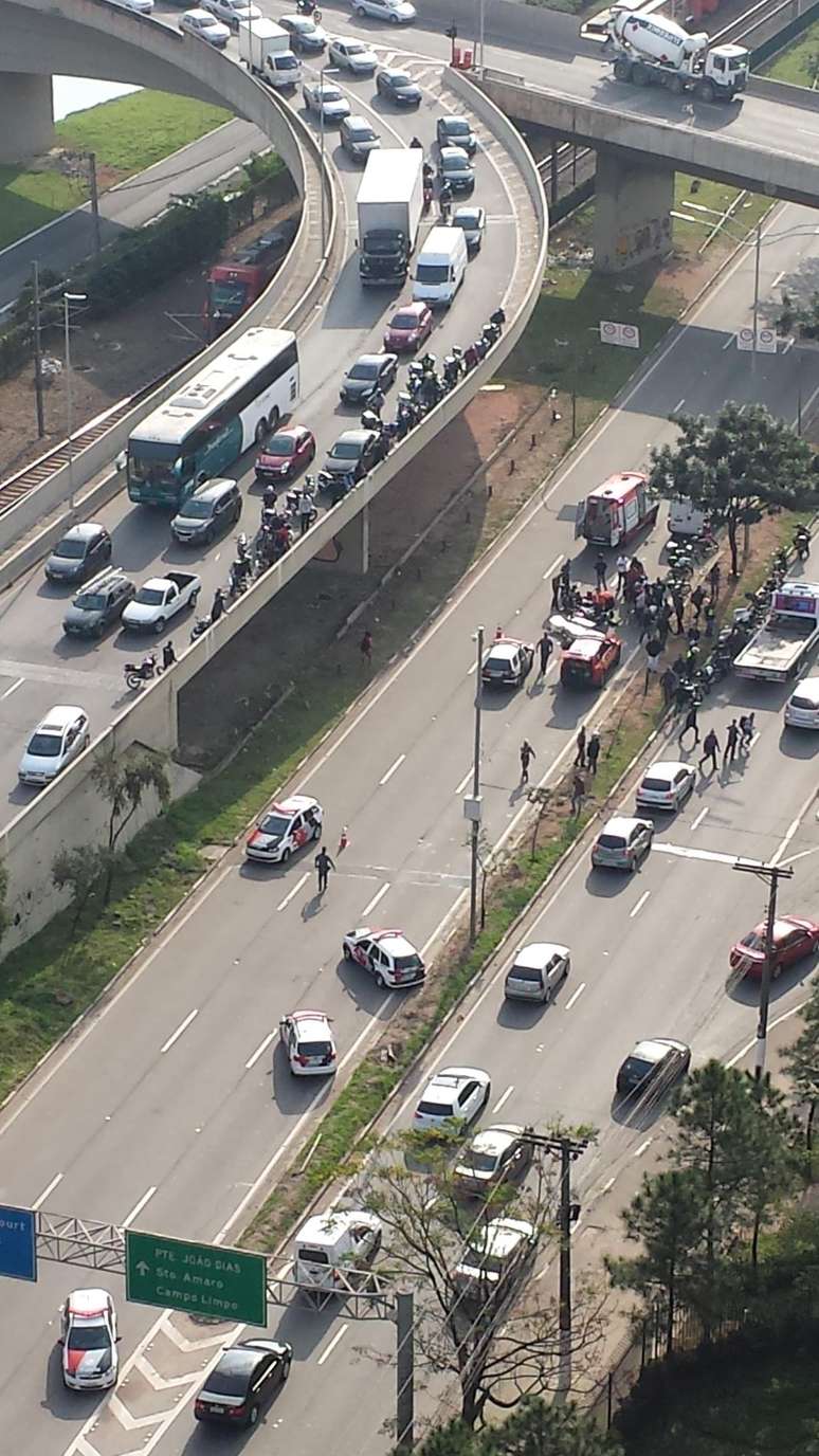 vc repórter: motociclista cai de ponte na Marginal Pinheiros