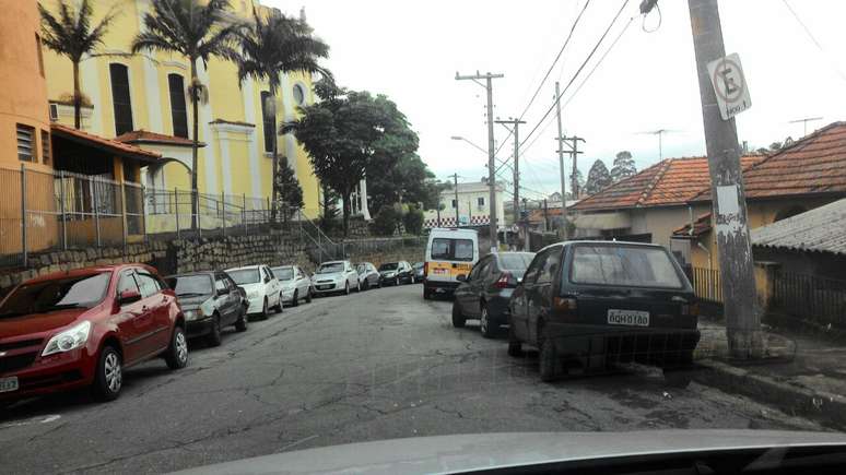 S. G. R. relatou que a placa, localizada na altura do número 239 do Largo da Igreja, é desrespeitada diariamente. Motoristas ignoram a proibição e estacionam seus carros na região proibida.