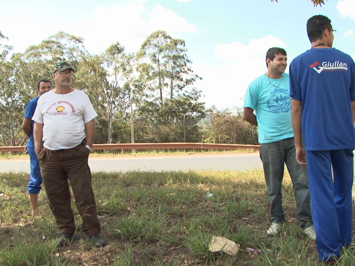 1º de julho - "É válido, mas parar a gente aqui não resolve. Deveria parar era lá em Belo Horizonte e parar políticos, eles quem deveriam ser prejudicados. Agora, parar aqui, onde não tem nada para comer nem beber, não concordo", reclamou o caminhoneiro Aloísio Forlan (de branco)