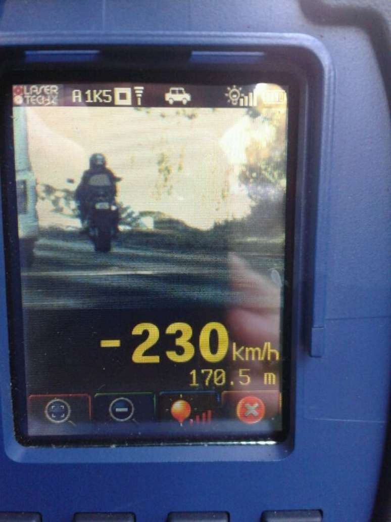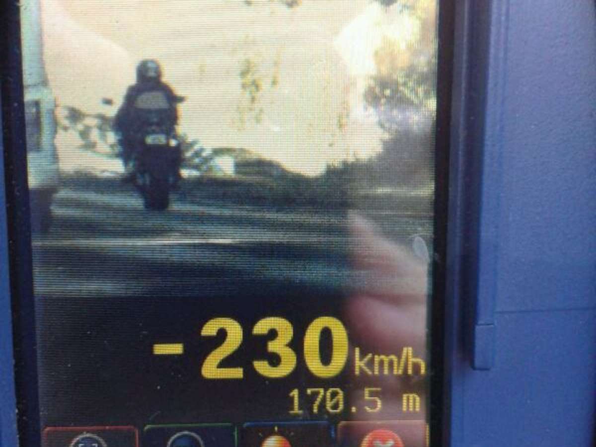 A Polícia Rodoviária Federal (PRF) flagrou nesta sexta-feira uma motocicleta a 230 km/h no km 417 da BR-285 em Panambi (RS). O limite no local é de 80 km/h. Além disso, o trecho é de pista simples – e é uma curva.