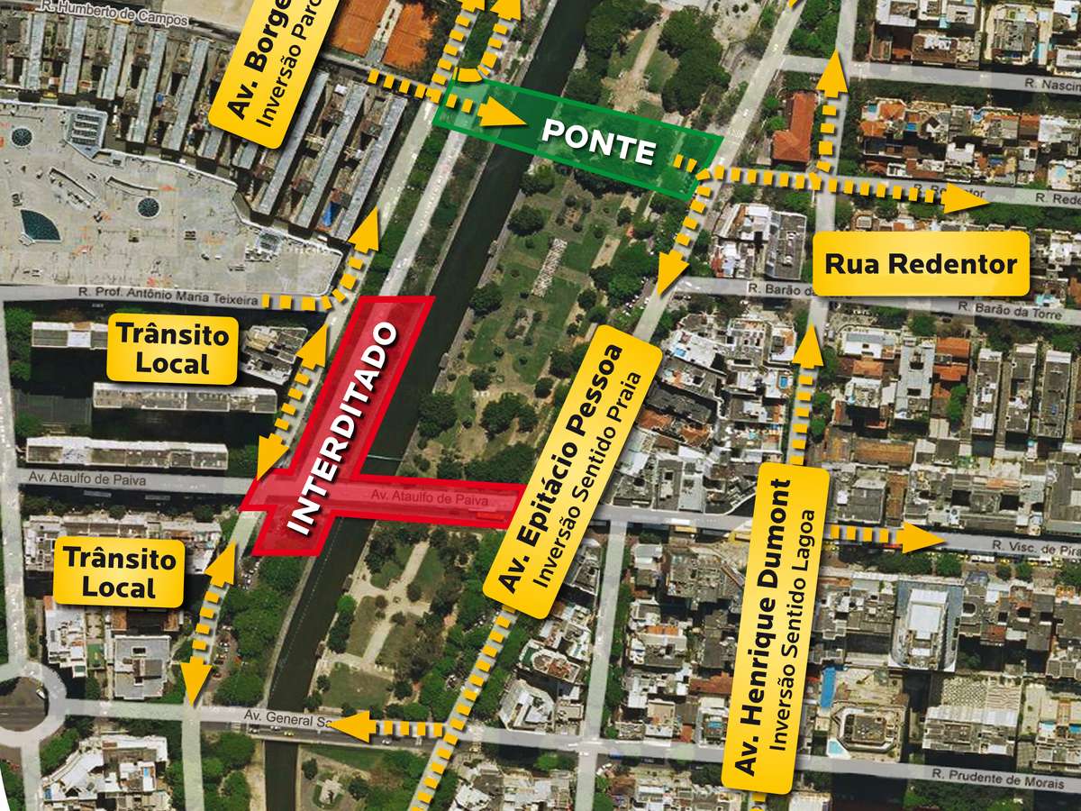 Segundo a Coordenadoria de Engenharia de Tráfego (CET-Rio), que coordenará todo o processo, foi construída no local uma ponte provisória (em estrutura metálica) sobre o canal do Jardim de Alah, que ligará Leblon e Ipanema, em substituição à ponte existente na Avenida Ataulfo de Paiva.