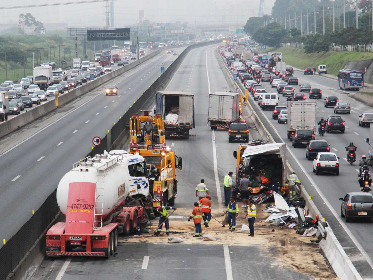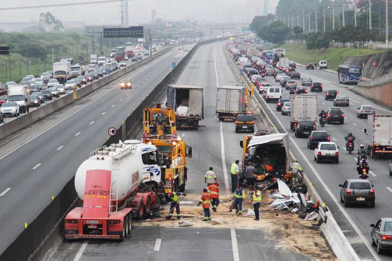 SP: acidente com caminhões mata 1 e causa congestionamento na Dutra