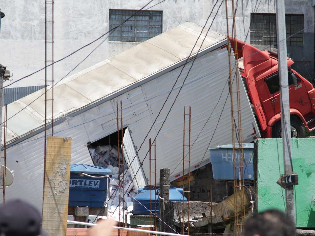 SP: caminhão atravessa muro e atinge 4 casas em Guarulhos