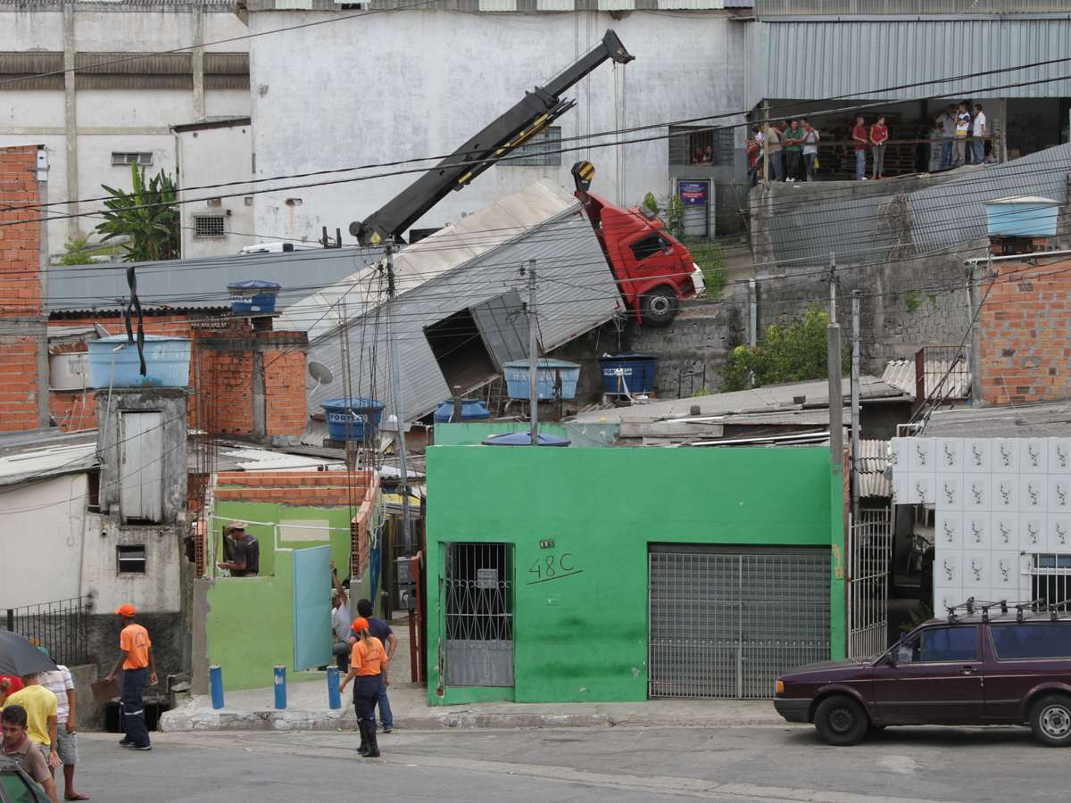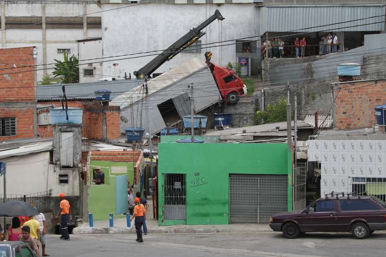 SP: caminhão que caiu sobre casas é retirado com guindastes