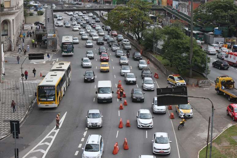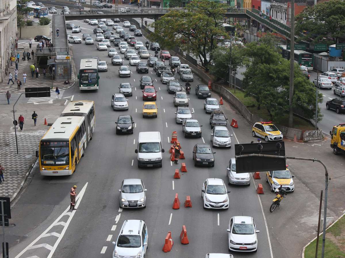 Segundo a CET, a lentidão no eixo ia da praça Campo de Bagatelle até o viaduto Pedroso. Até as 9h, as duas faixas seguiam interditadas.
