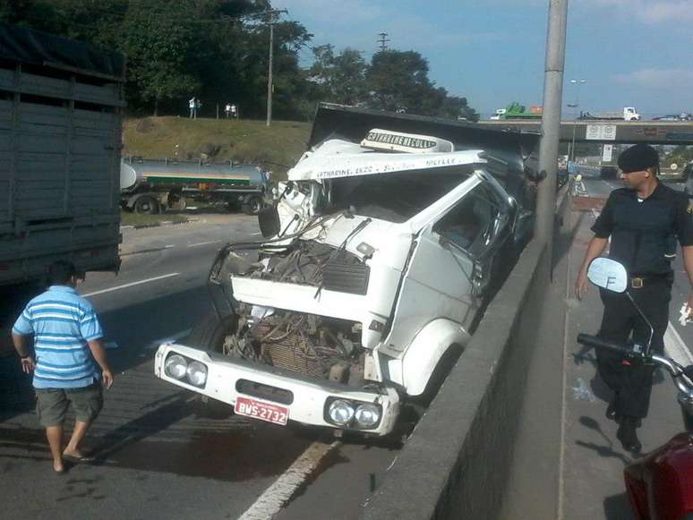 Dois caminhões e um carro se envolveram em um acidente no km 26 da rodovia Raposo Tavares (SP-270), próximo ao acesso ao município de Embu das Artes, região metropolitana de São Paulo
