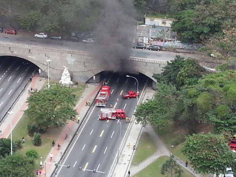vc repórter: incêndio interdita túnel Novo no sentido Copacabana, no Rio