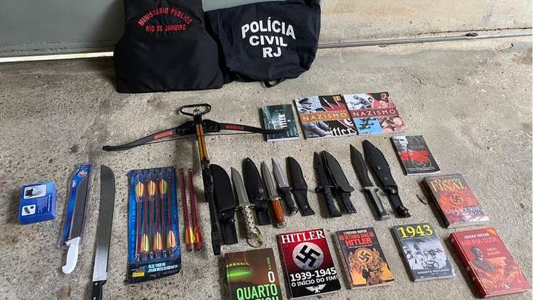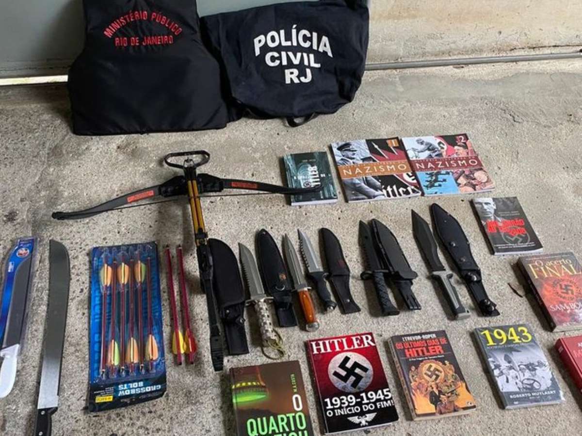 Entre os elementos apreendidos nas casas dos suspeitos de integrar os grupos estavam itens como facas, arco e flechas e livros sobre nazismo.