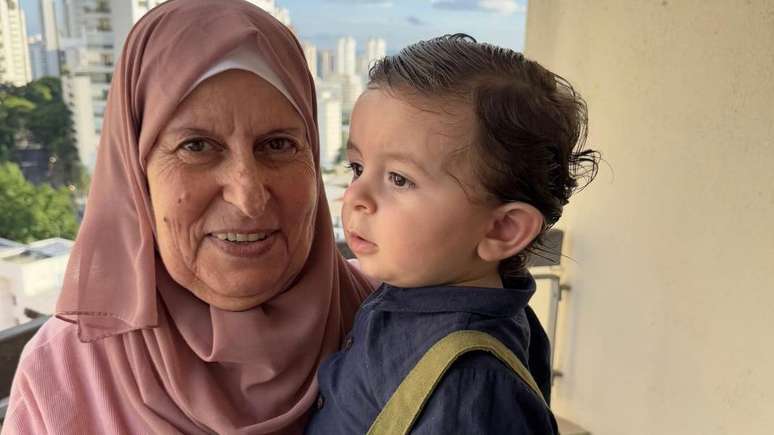 Nawal Abujayyab, de 61 anos, conseguiu sair de Gaza graças à intermediação do governo brasileiro e conheceu o primeiro neto em São Paulo