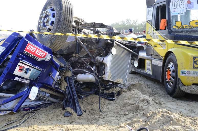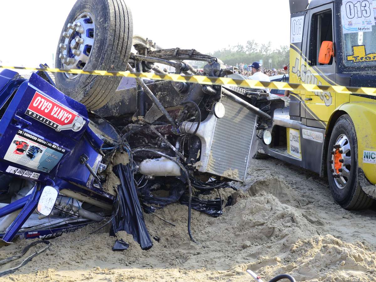 O gaúcho Edson Beber, 46 anos, disputava a final da categoria protótipo na 24º Arrancada Internacional de Caminhões. Em um vídeo gravado por um dos espectadores, é possível ver o momento Beber perde o controle do caminhão, que capotou na areia da praia até parar com as rodas viradas para a cima.
