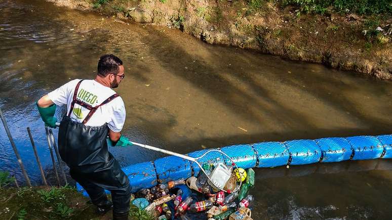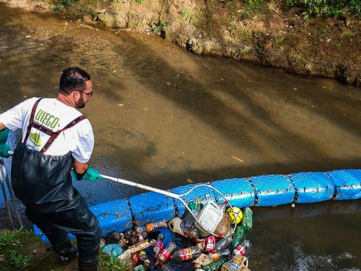 Vendedor cria barreira ecológica para retirar lixo e salvar rio em que aprendeu a nadar na infância