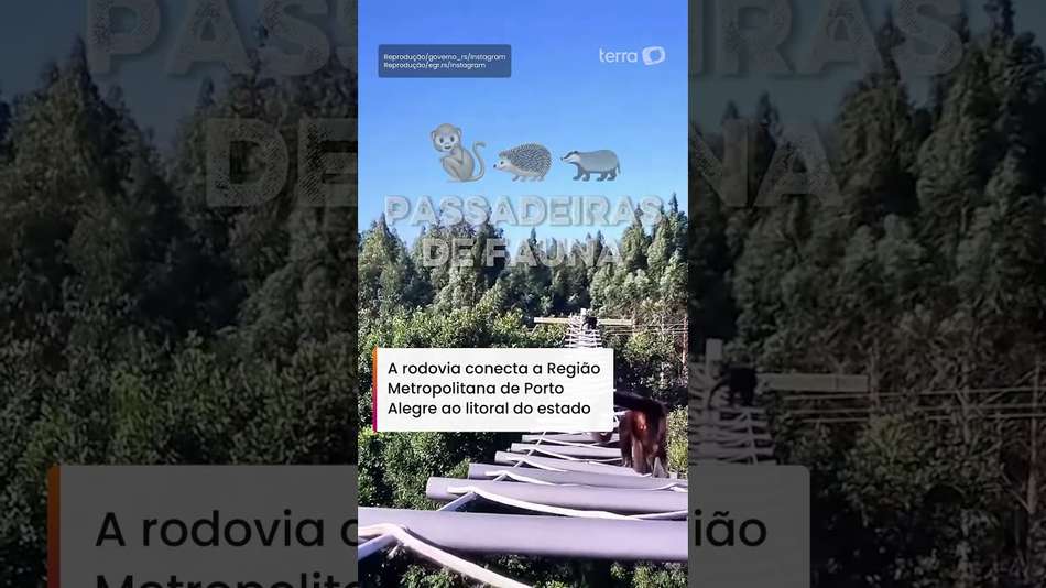 Desde outubro de 2022, 20 passarelas aéreas foram instaladas ao longo da RS-040. A rodovia conecta a Região Metropolitana de Porto Alegre ao litoral do estado. As estruturas facilitam o deslocamento de animais silvestres. Elas também contribuem para a preservação de espécies ameaçadas de extinção. Entre setembro de 2024 e maio de 2025, mais de 4 mil bichos foram flagrados usando as passarelas. Dados oficiais apontam que os registros de atropelamentos de animais silvestres quase zeraram. Reprodução/governo_rs/Instagram Reprodução/egr.rs/Instagram #terranoticias #TerraNotíciasShorts #TerraVideos