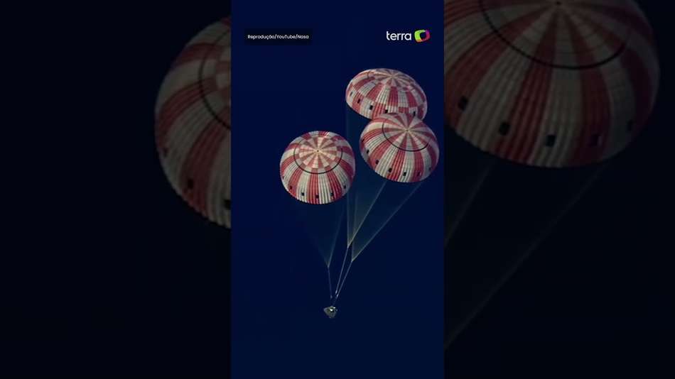 Uma das etapas mais críticas da missão, o pouso foi concluído na noite desta sexta, 10, na costa de San Diego, nos Estados Unidos. Dois kits de paraquedas foram liberados durante a operação para estabilizar a cápsula e reduzir a velocidade da queda para 32 km/h. Após o pouso, o capitão Reid Wiseman confirmou que todos os integrantes da missão passavam bem e aguardavam a operação de retirada. #terranoticiasshorts Crédito: Reprodução/YouTube/Nasa