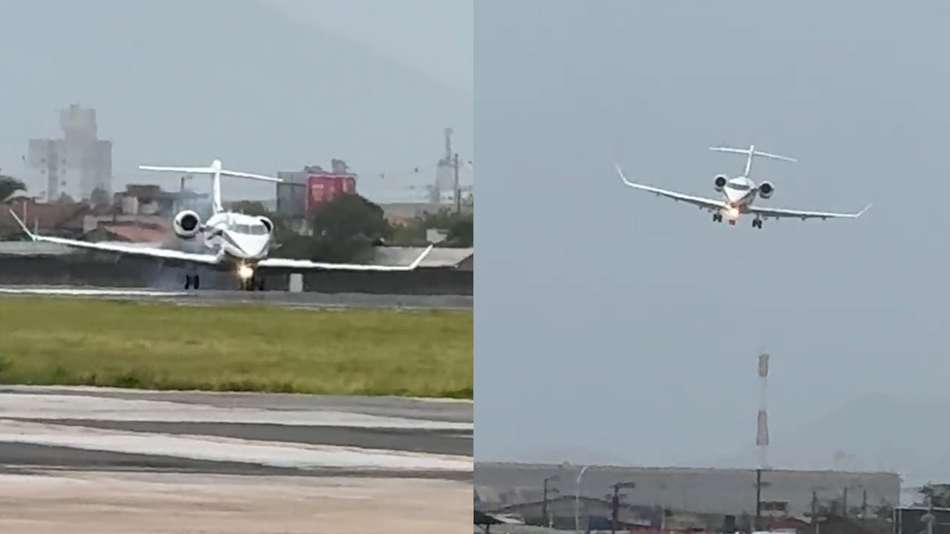 A aterrissagem foi registrada no último sábado, 24, no aeroporto de Navegantes. Um vídeo compartilhado pelo empresário nas redes mostra a aeronave realizando o pouso. "Enfrentamos rajadas de até 60 km/h contra a aeronave. Mesmo assim, os pilotos Jean e Balke fizeram um pouso impecável", escreveu o dono das lojas Havan. "Foi um voo cheio de emoção e adrenalina! Meu agradecimento ao time da Aviação Havan", escreveu Thumb: 'Emoção e adrenalina'. Reprodução/@lucianohangbr/Instagram