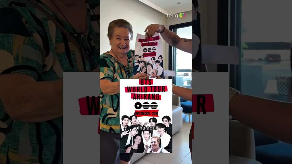 Júlia, de 86 anos, é apaixonado pelo grupo de k-pop e ganhou um presente de Beatriz Horta. Primeiro jovem diz que não conseguiu os ingressos, mas depois revela que as duas estarão no show. Ao Terra, Júlia contou que conheceu o BTS por meio de outro neto e logo virou uma ARMY, como são chamadas as fãs. Imagens: Reprodução/Instagram/biahorta_ #terraentreteshorts #terraentrete