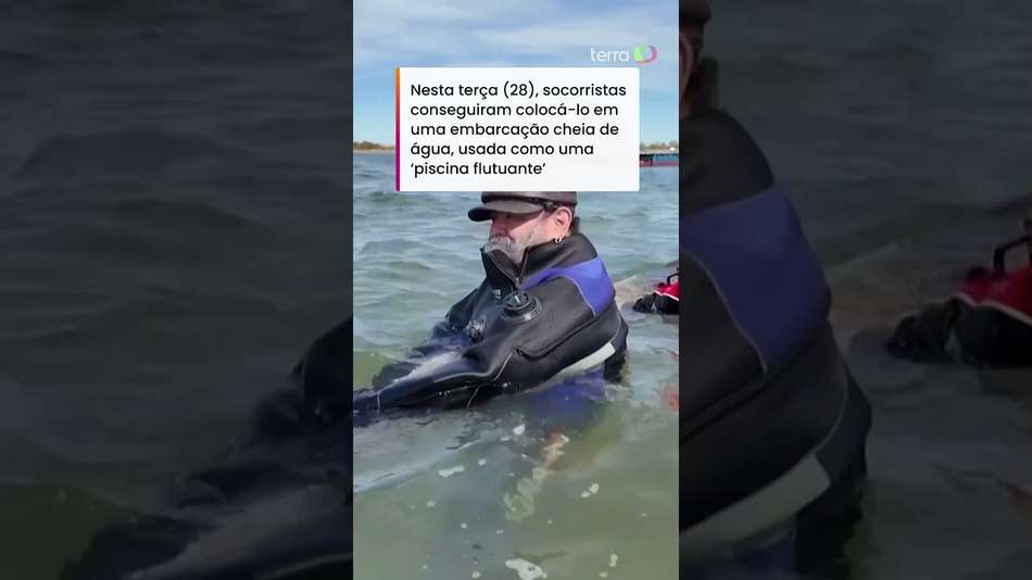 Baleia-jubarte que ficou encalhada por semanas é resgatada na Alemanha e está a caminho do mar aberto. O animal apelidado de 'Timmy' ficou preso em áreas rasas do Mar Báltico desde março, mobilizando equipes de resgate. Nesta terça (28), socorristas conseguiram colocá-lo em uma embarcação cheia de água, usada como uma 'piscina flutuante'. A operação envolveu cintas e a escavação de um canal na areia para conduzir o animal de 12 toneladas até a estrutura. Durante o resgate, a baleia chegou a nadar em parte do trajeto até a embarcação, o que foi visto como um sinal positivo. Dois milionários financiam a operação, que tem sido criticada por alguns especialistas por prolongar o sofrimento de Timmy. #terranoticias Reprodução/Instagram/drjennawallace Divulgação/Sea Shepherd Deutschland Greenpeace via Reuters Nonstop News via Reuters