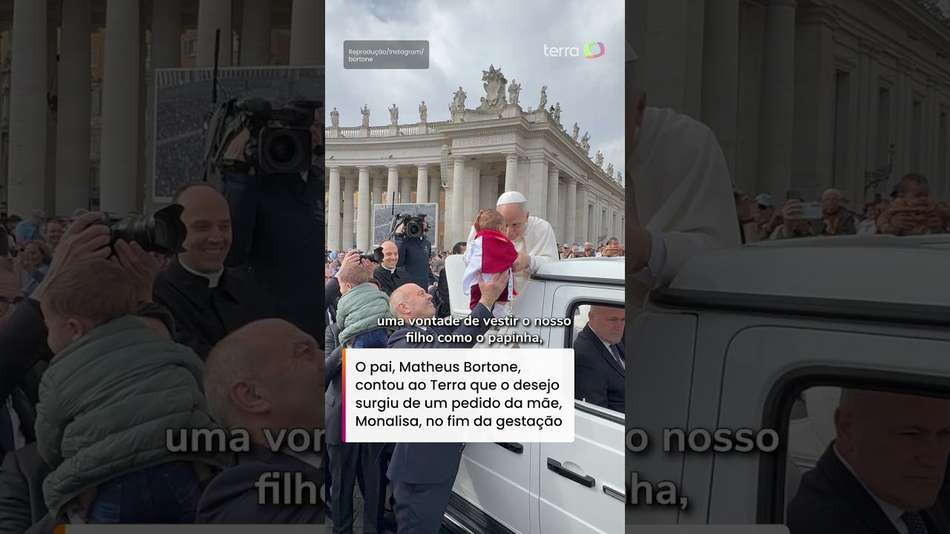 "Momento muito grandioso". Um bebê brasileiro foi abençoado pelo papa Leão XV durante uma audiência papal no dia 11 de março. Vestido de papa, o pequeno Paulo, então com quatro meses, recebeu o carinho do pontífice. Em entrevista ao repórter do Terra Leandro Chagas, o influenciador Matheus Bortone, morador de Taubaté (SP), contou que a ideia de viajar ao Vaticano para conseguir a bênção ao primeiro filho surgiu de um pedido da esposa, Monalisa, ao fim da gestação. #terranoticiasshorts