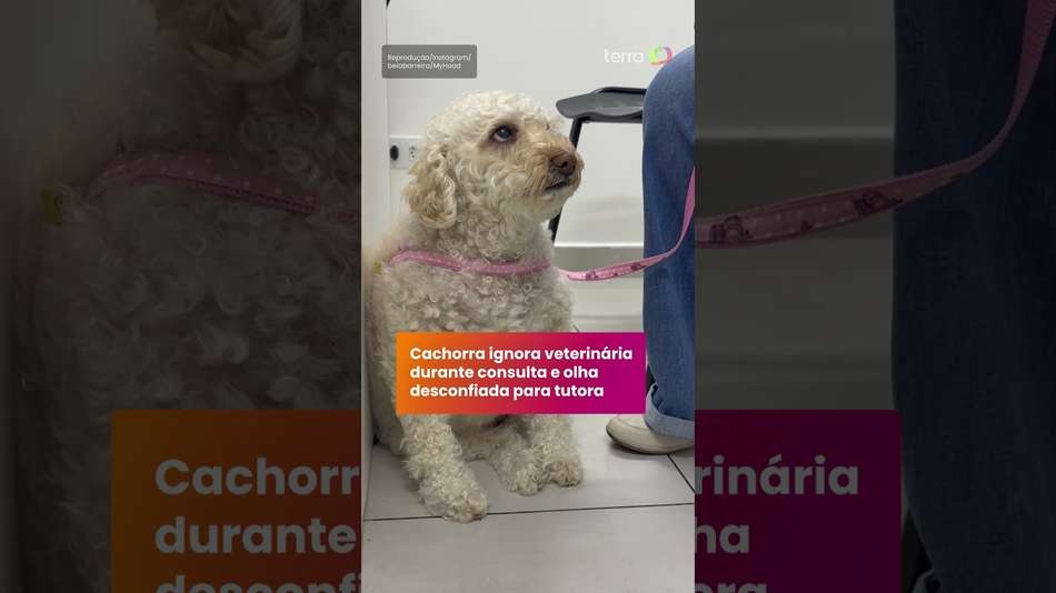 Uma cachorra chamou atenção nas redes sociais pela reação expressiva durante uma consulta veterinária com a profissional Isabela Barreira. No vídeo, enquanto a médica tenta iniciar o atendimento, o animal demonstra desconfiança e olha para a tutora como se pedisse ajuda para sair dali. A cena viralizou e divertiu internautas. "Ela olhando: 'mãe, posso morder?'", disse um comentário. #TerraBrasil #Pets #Cachorro #Veterinário #Viral Reprodução/Instagram/belabarreira/MyHood