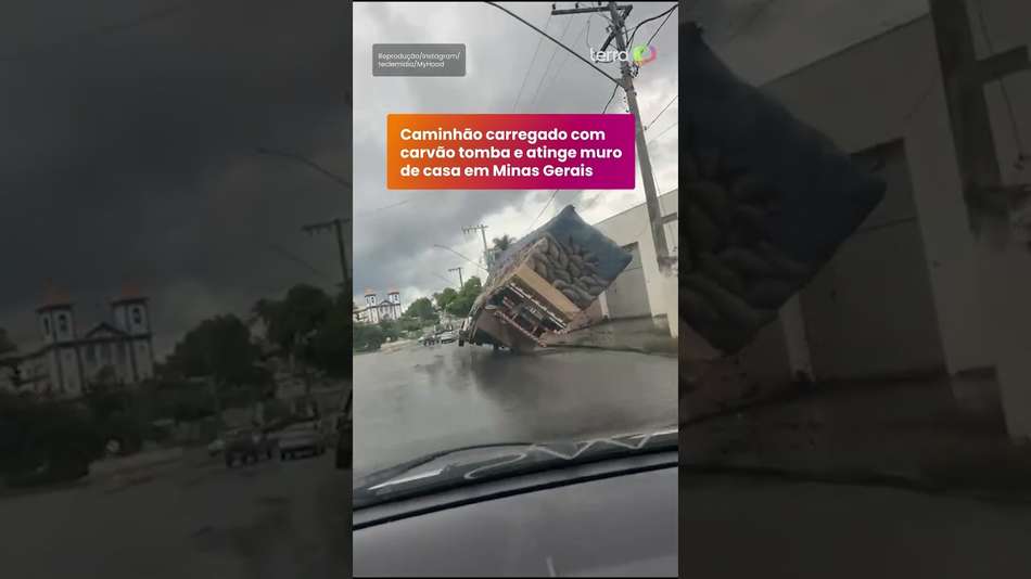 Um caminhão carregado com carvão tombou em uma avenida de Sete Lagoas, em Minas Gerais, na tarde de quarta-feira (11). O acidente foi registrado em um vídeo que circula nas redes sociais e mostra o veículo saindo da pista, avançando sobre a calçada e atingindo parte do muro de uma residência. Segundo o Corpo de Bombeiros, o motorista conseguiu sair da cabine por conta própria e não houve registro de feridos. #TerraBrasil #TerraVídeos #Caminhão #Trânsito #minasgerais Reprodução/Instagram/teclemidia/MyHood-