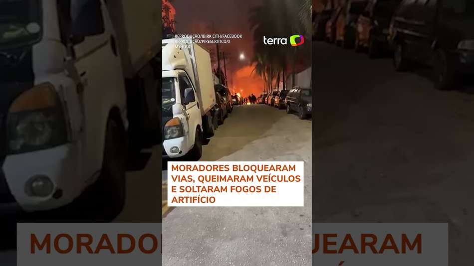 O ataque foi em reação a uma operação policial que resultou na morte de um homem. Moradores bloquearam vias, queimaram veículos e soltaram fogos de artifício. A ação da Polícia Militar terminou com duas mortes e três prisões nesta quinta-feira, 10. Reprodução/Ibira Cith/Facebook Reprodução/pirescritico/X MyHood #TerraVídeos #terranoticias