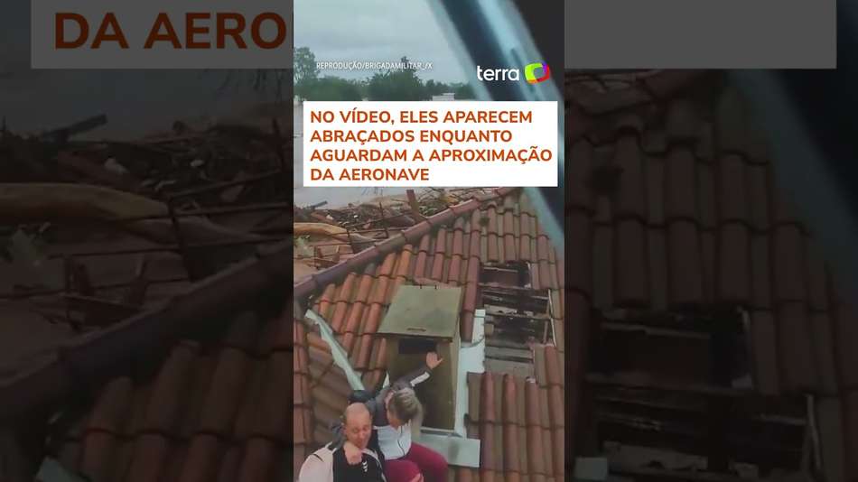 Casal é resgatado do telhado de casa por helicóptero da Brigada Militar no RS. A cena foi registrada pela corporação nesta quinta-feira, 2, na cidade de Cruzeiro do Sul. No vídeo, eles aparecem abraçados enquanto aguardam a aproximação da aeronave. Após alguns instantes, ambos são resgatados e colocados para dentro do helicóptero. As chuvas no Rio Grande do Sul já deixaram ao menos 31 mortos; 74 estão desaparecidos. O governador Eduardo Leite (PSDB) falou em "situação dramática" por causa das chuvas. #terranoticias Reprodução/brigadamilitar_/X